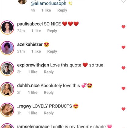 I was so excited with this purchase, and Aliamor Lusso did not disappoint! Got Monique, Lucille and Bern- at bet ko sila lahat! Legit na it’s smudge proof, tried with my mask on and when I removed the mask, there’s no evidence na I’m wearing lipstick. Thank you for bringing us your wonderful creations Aliamor Lusso! No need to buy expensive ones, kasi same quality sila with your items.